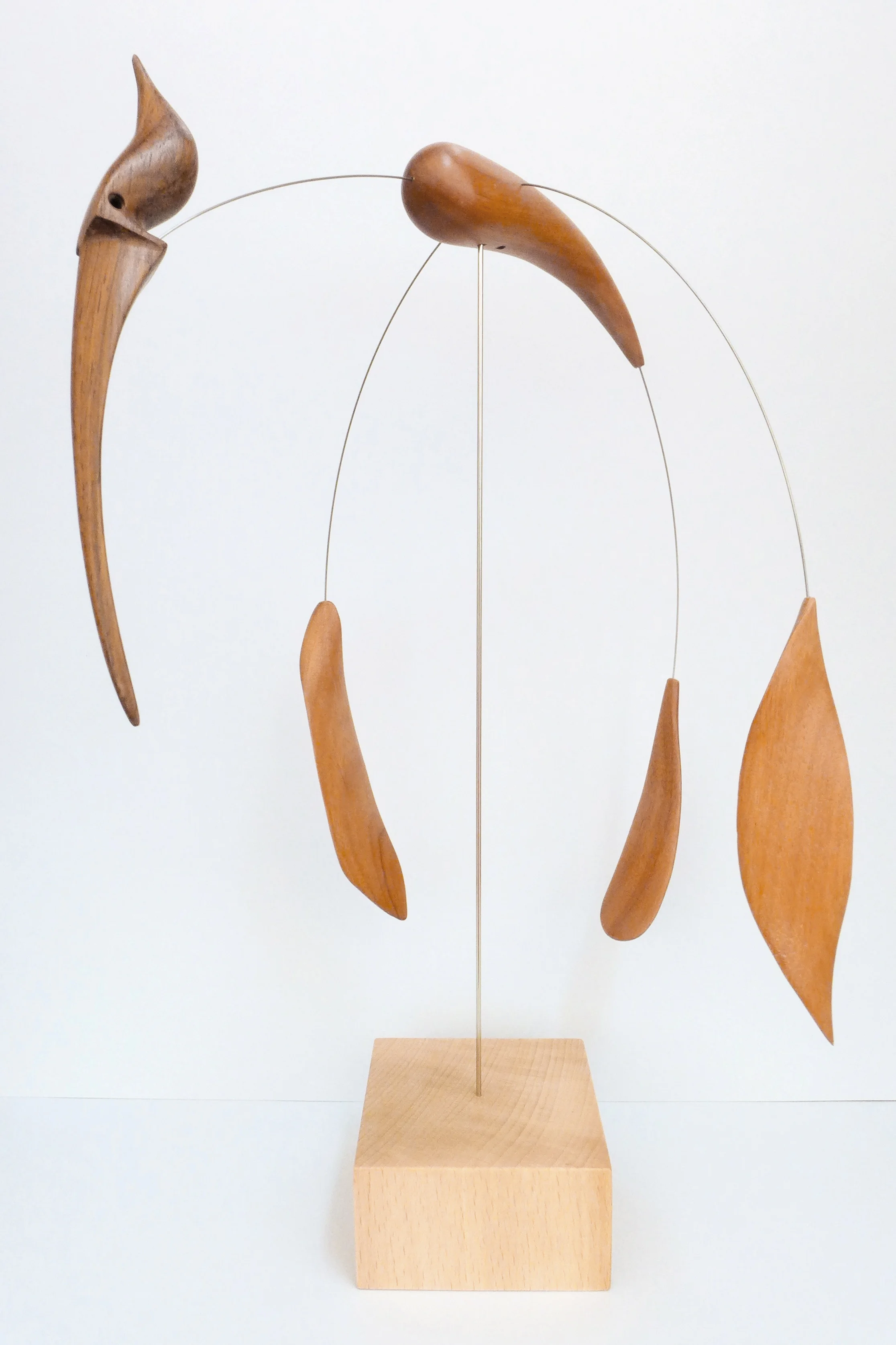 Composición de cuatro piezas de madera de cedro y cabeza de nogal.